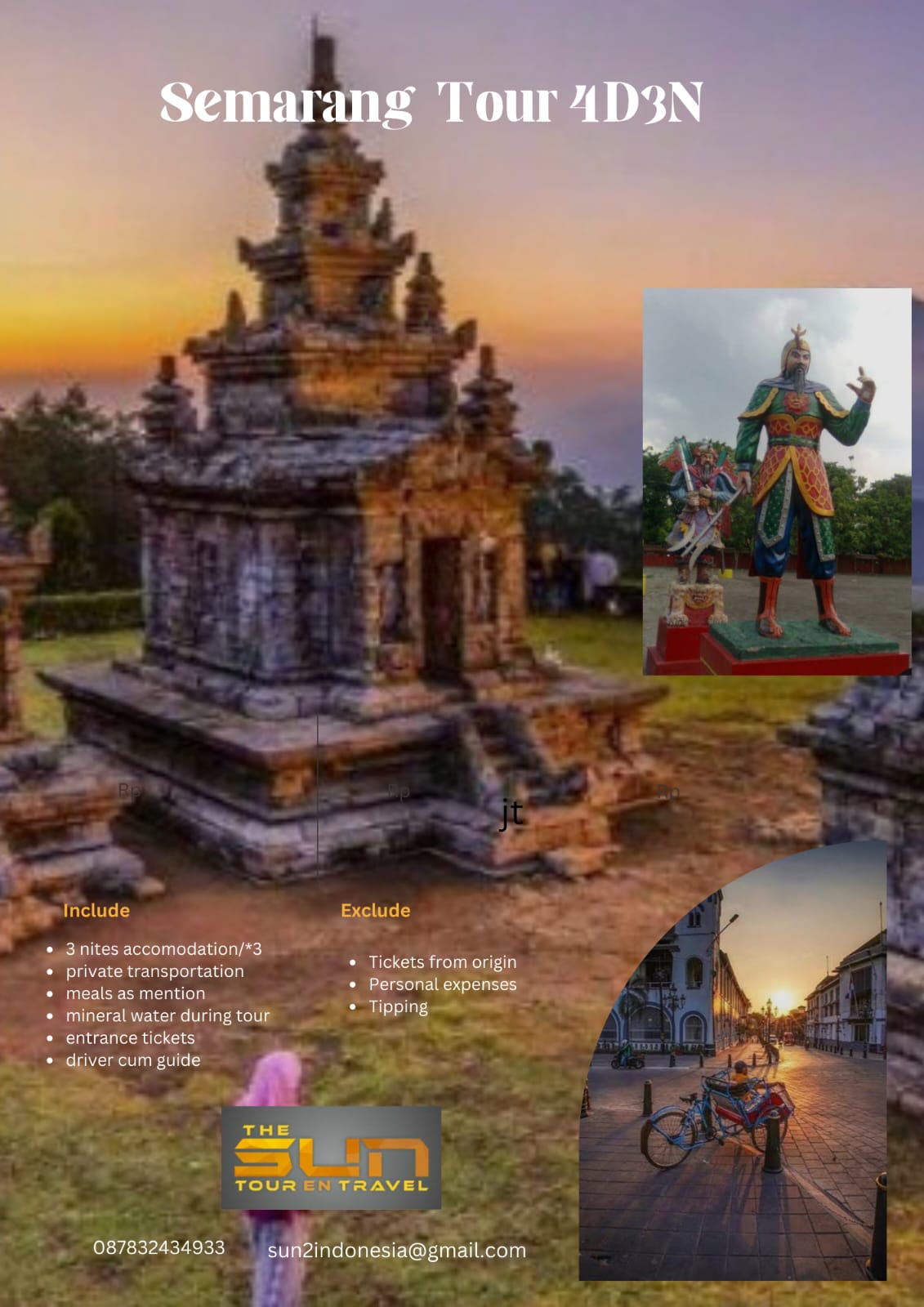 The Sun Tour en Travel adalah biro perjalanan profesional di Semarang yang berpengalaman sejak 2012. Kami siap melayani kebutuhan wisata, studi tur, MICE, dan transportasi untuk destinasi domestik maupun internasional.